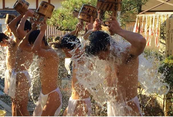 冷水を浴びて身心を清める修行です。非日常の緊張感の中で心を引き締めます。