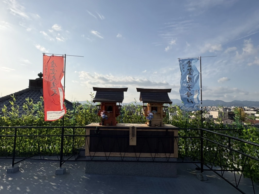 晴れの日は屋上からは東山エリアを一望できます。受付で参拝料をお支払いください。